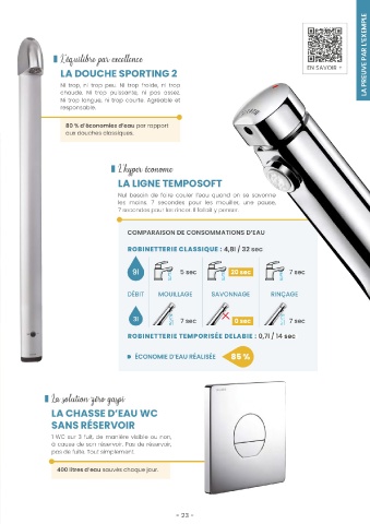De quoi favoriser l’obtention            ROBINETTERIE TEMPORISÉE DELABIE : 0,7l / 14 sec