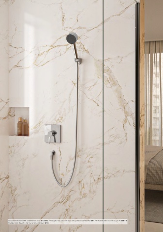 Douchette chromée filtrante BIOFIL 31261C - Mitigeur de douche mécanique encastrable 2541 - Flexible de douche SILVER 836T1 Support de douchette mural en applique 845