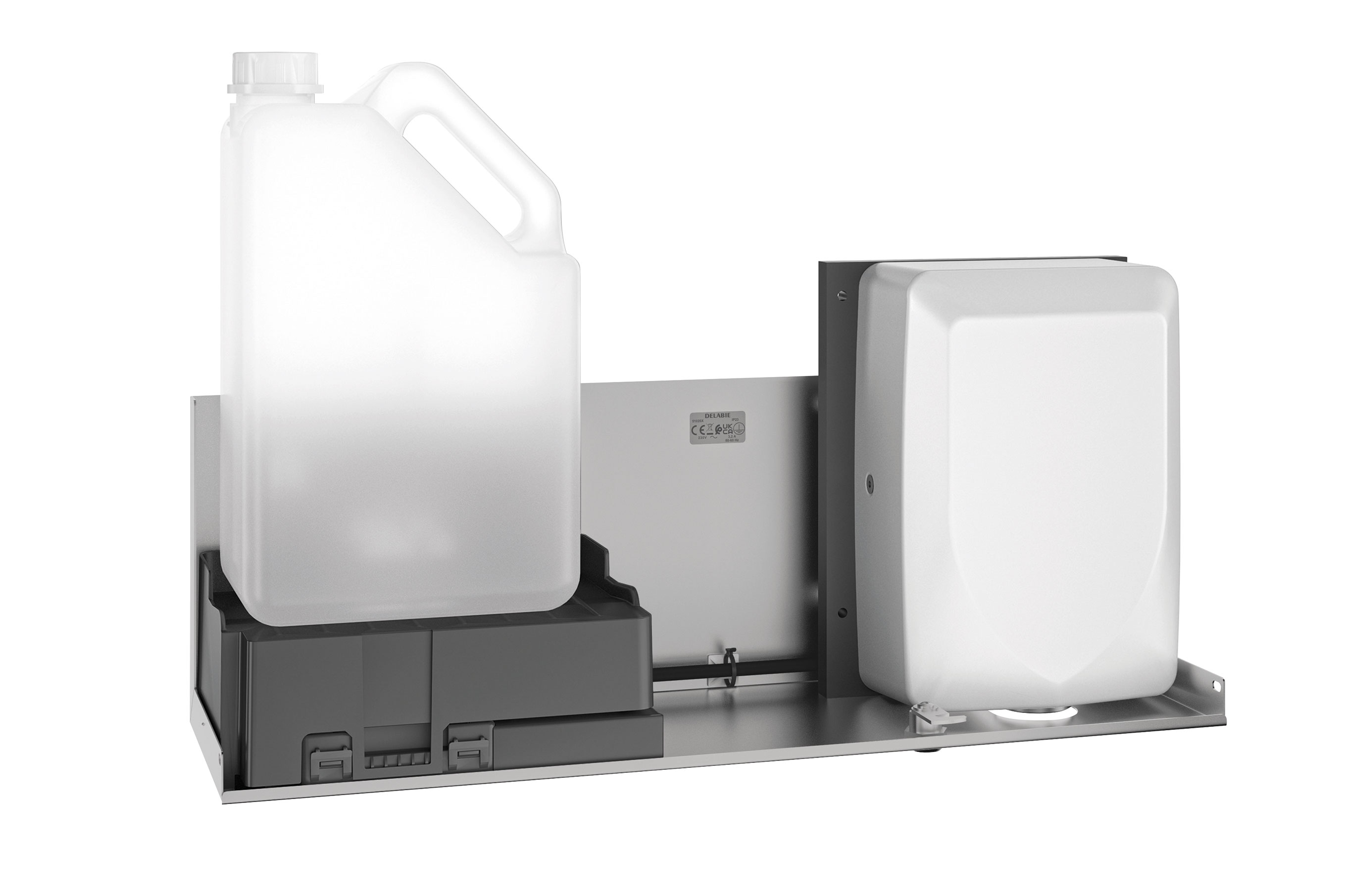 Module 2 fonctions : distributeur de savon automatique et sèche-mains électrique à air pulsé.