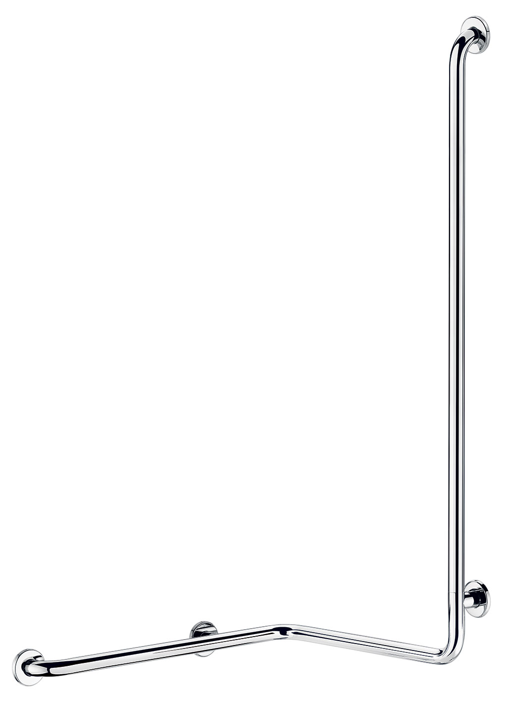 Barre de maintien d'angle et d'équerre 2 murs avec remontée verticale Ø 32, pour PMR. Modèle à gauche.
