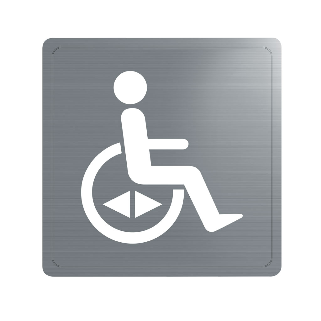Logo toilette "Transfert vers la droite et la gauche" avec silhouette personne en fauteuil roulant ou PMR.
