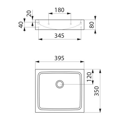 Réf. 120830BKLavabo à accrocher au mur, 395 x 350 mm.