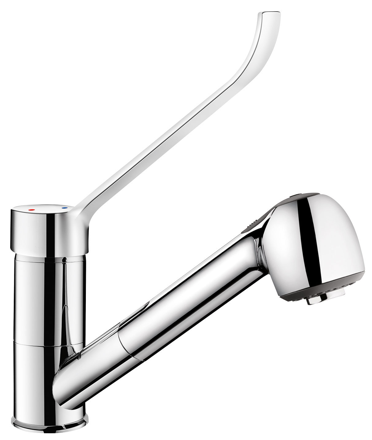 Mitigeur monotrou adapté aux personnes à mobilité réduite (PMR).