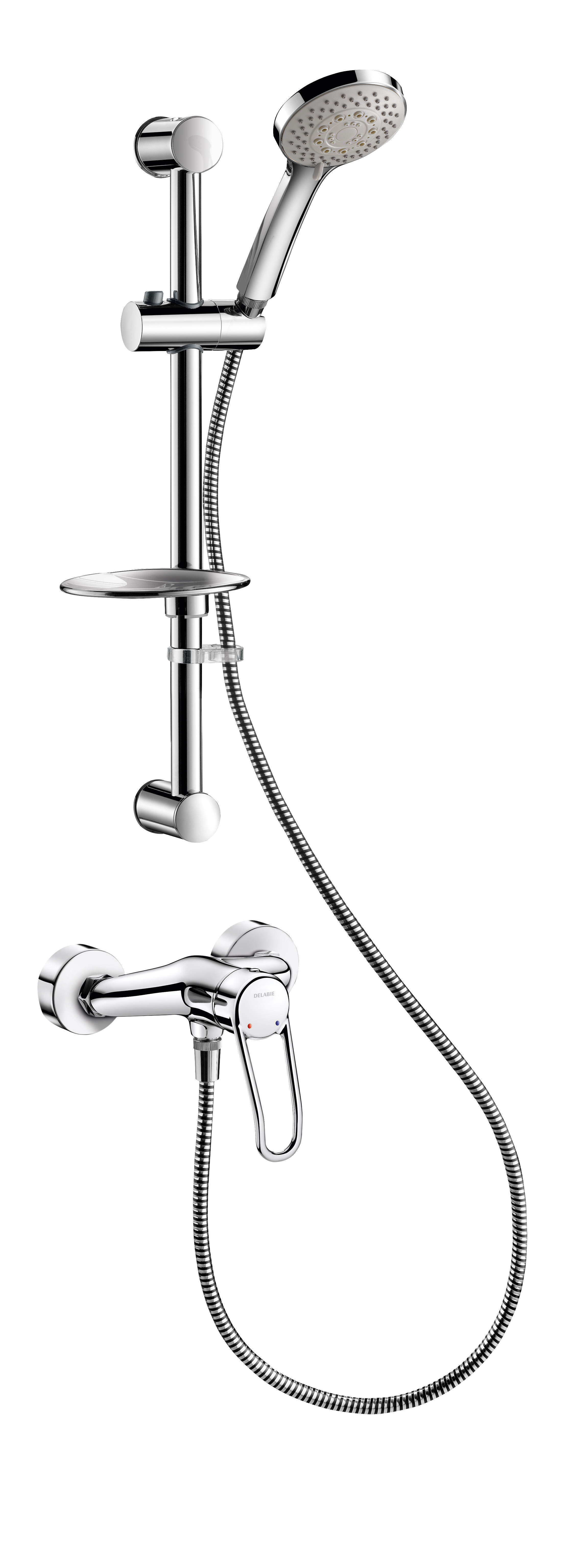 • Pommeau de douche coulissant (réf. 813) sur rampe chromée (réf. 821) avec porte-savon et flexible (réf. 834T1).