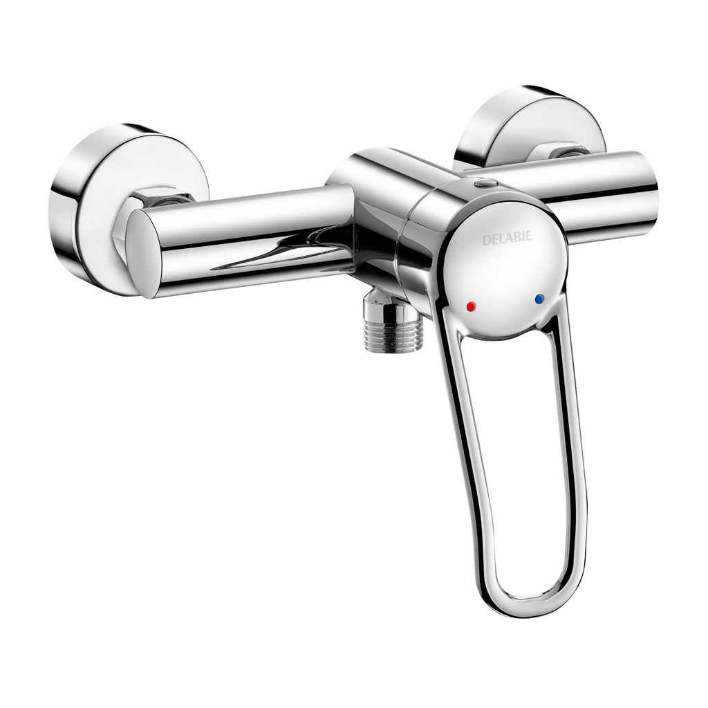 Mitigeur de douche adapté aux personnes à mobilité réduite (PMR).