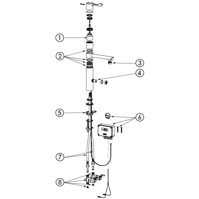 Réf. 20464T1Mitigeur électronique de lavabo à bec haut orientable L.160 H.165.
