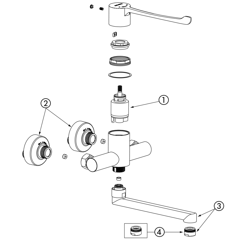 Réf. 2437Mitigeur de lavabo mécanique séquentiel mural.
