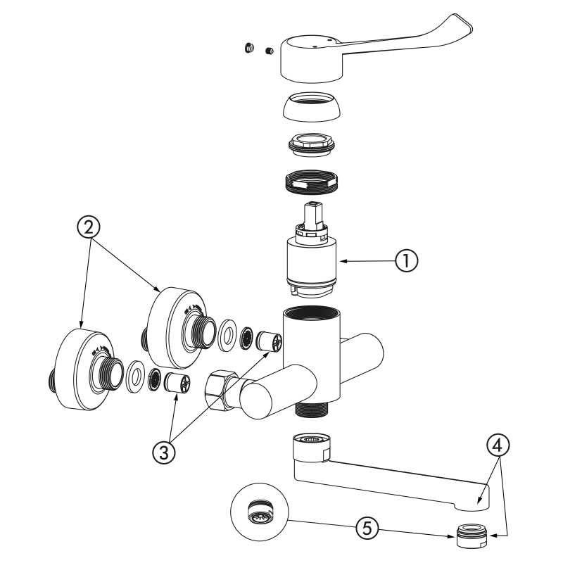 | 2445EPS | Cartouche EP - Bec L.200 - Manette ajourée - Raccords excentrés standards | 314,05 € HT | |