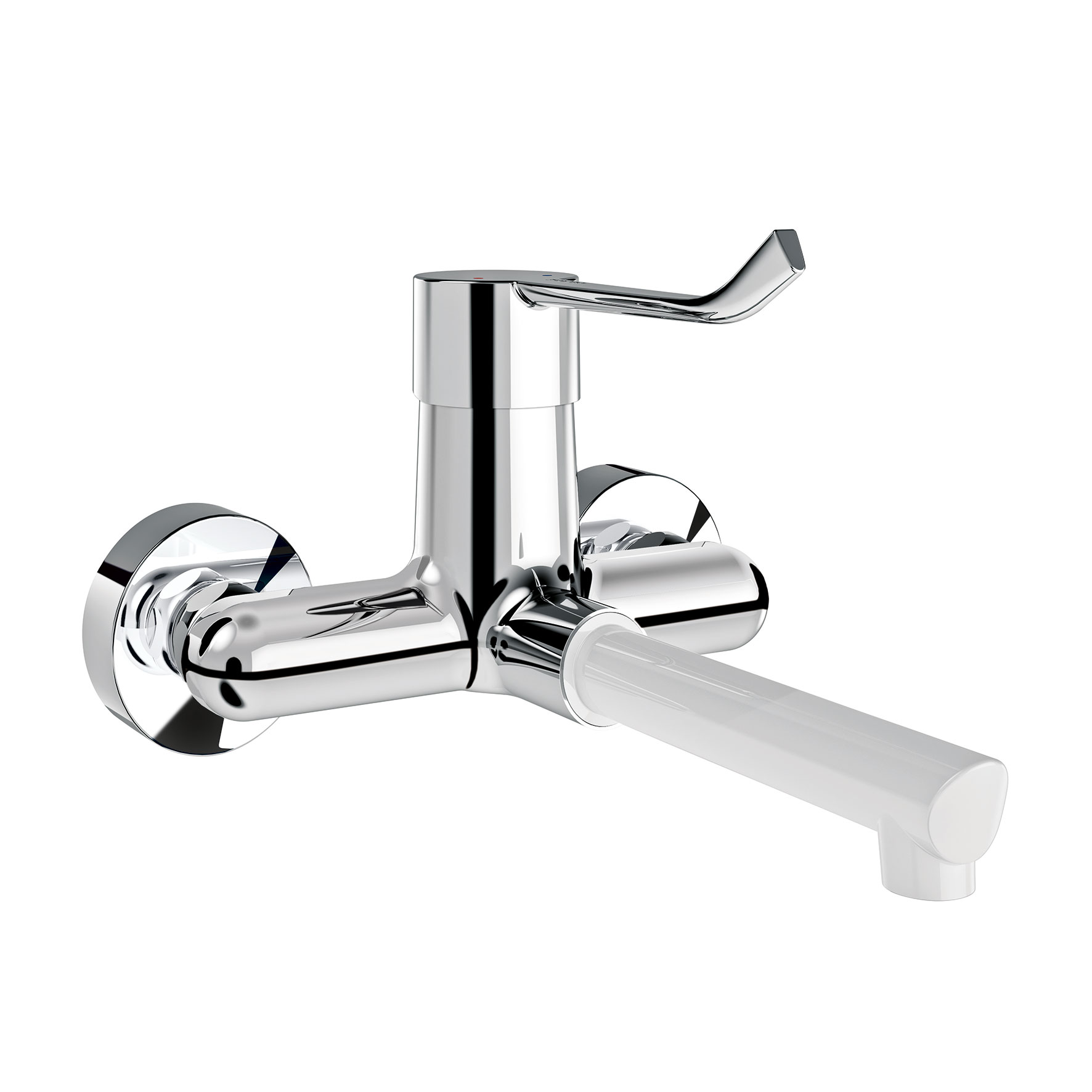 Mitigeur mural livré avec 1 bec jetable déclipsable jetable en Hostaform® recyclable L.125.