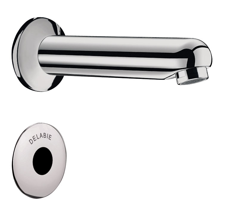 Robinet de lavabo électronique en traversée de cloison :