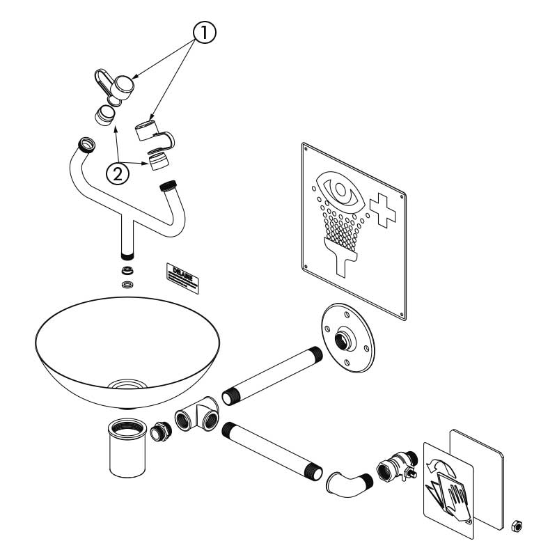 Réf. 9102Lave-yeux de sécurité mural à commande manuelle équipé de :