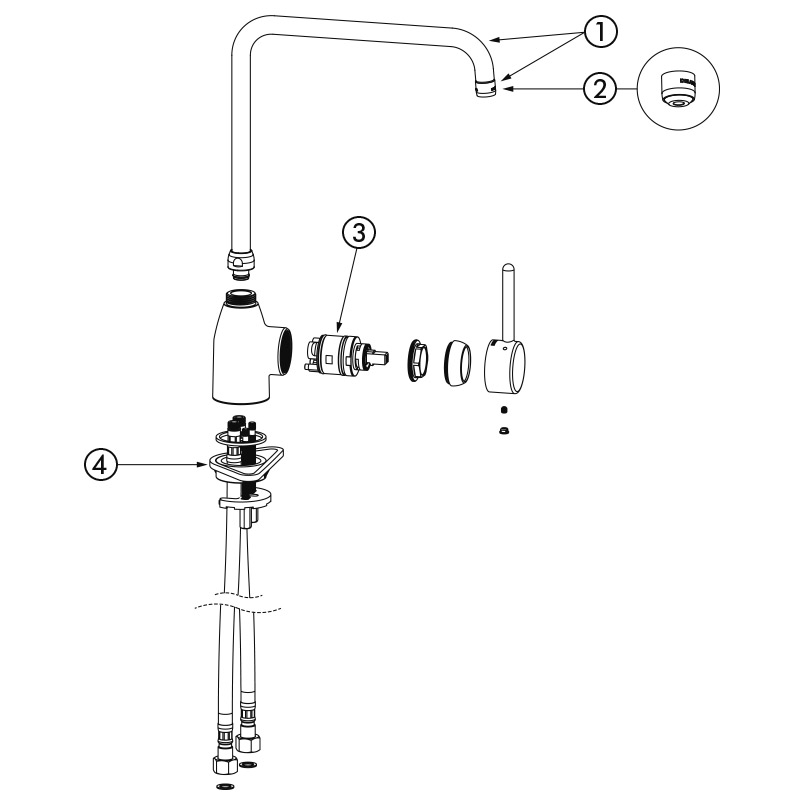 Corps et bec en laiton chromé avec fixation renforcée par 2 tiges Inox et contre-écrous.