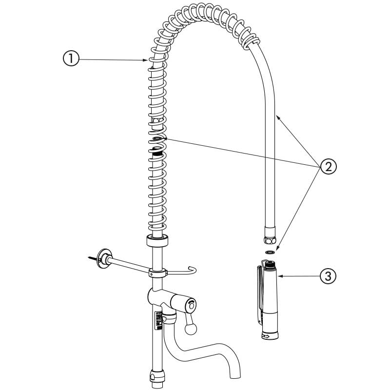 Ce modèle de combiné, sans robinetterie, est composé de pièces détachées pour la rénovation des dispositifs de prélavage.