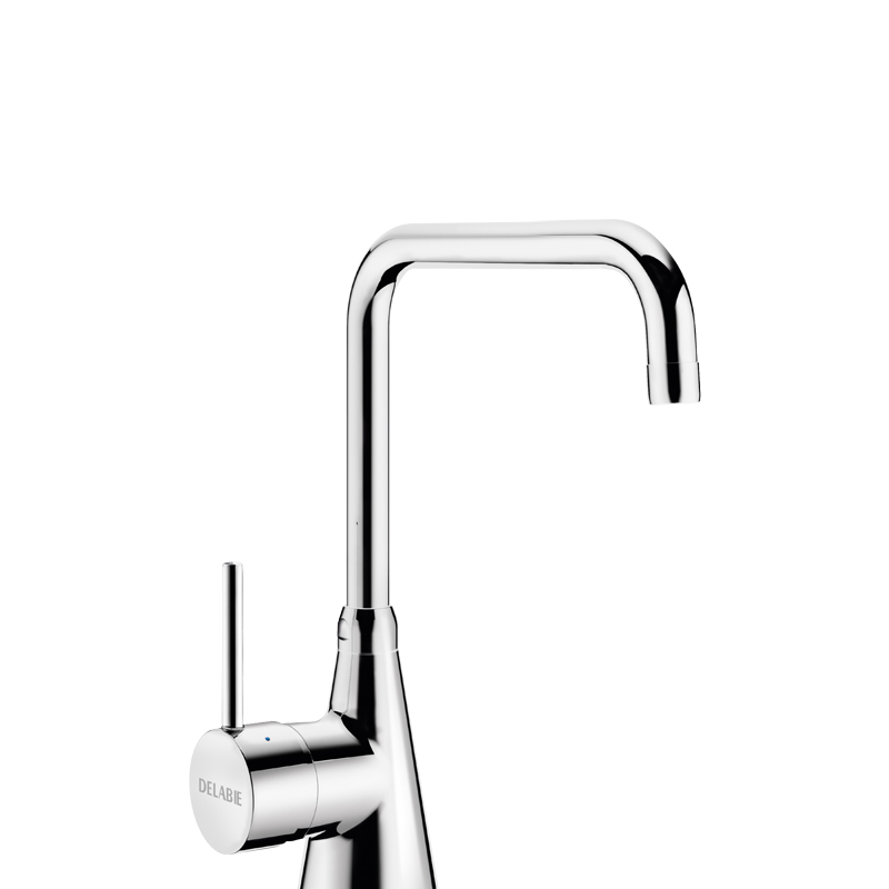 Mitigeur monotrou sur plage de grande cuisine.